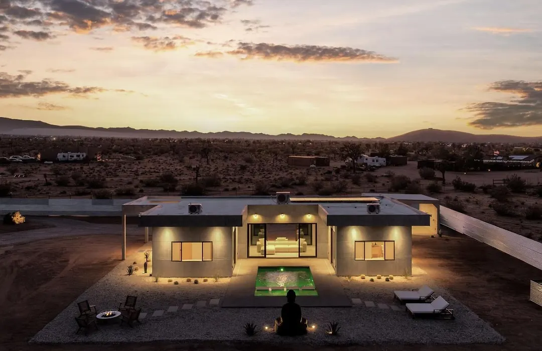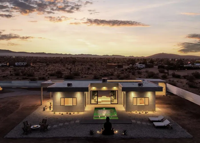 De 2-slaapkamer Villa Solace By Fieldtrip Modern Desert Oasis W Pool Joshua Tree bevindt zich op circa 15 minuten rijden naar Cap Rock en nodigt gasten uit om attracties in de omgeving te verkennen.